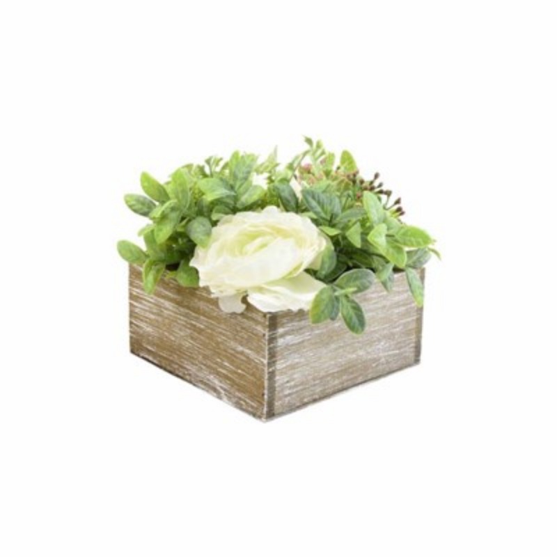ARTIFICAL HERBS AND FLOWERS WOODEN BOX 18CM