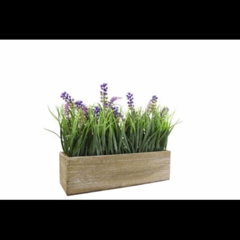 ARTIFICAL LAVENDER & ONION GRASS WOOD BOX 27CM