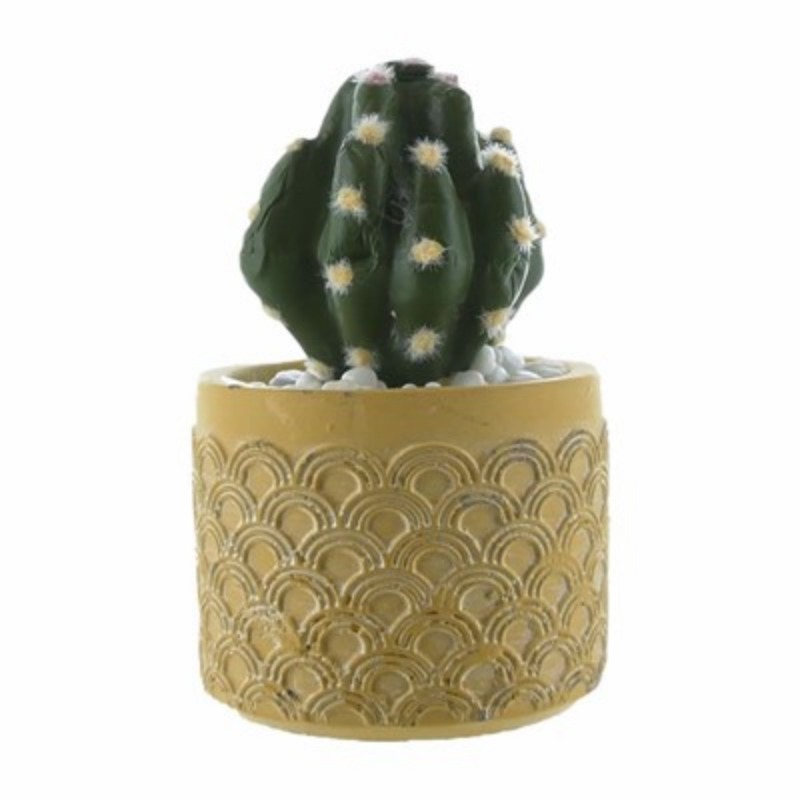 HomeGIFTWARE ARTIFICAL ROUND CACTUS YELLOW CEMENT POT 12CM